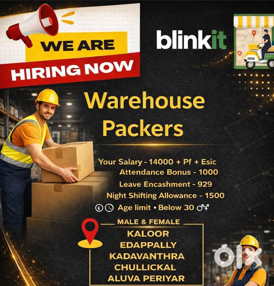 - ₹ 15499 - 16499 | MonthlyThammanam blinkit Packing Picking vacancyKaloor, KochiYesterday