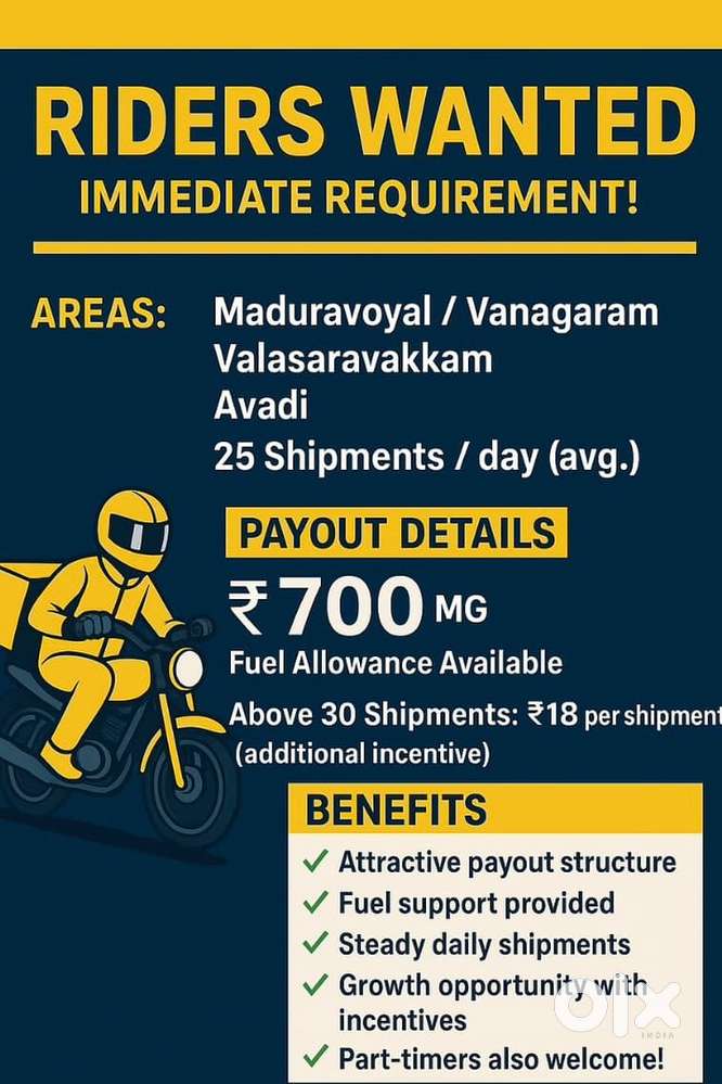 - ₹ 17000 - 20000 | MonthlyBike Courier Delivery @ Porur - MugalivakkamPorur, ChennaiToday
