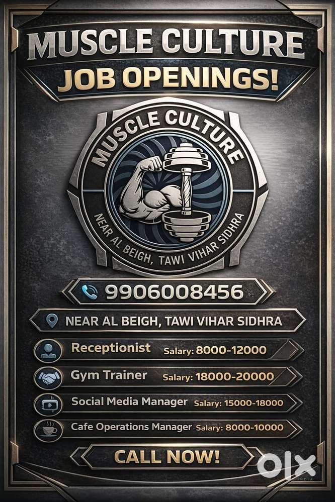 - Today₹ 8000 - 20000 | MonthlyJob Openings At Muscle Culture Gym SidhraSidhra, Jammu