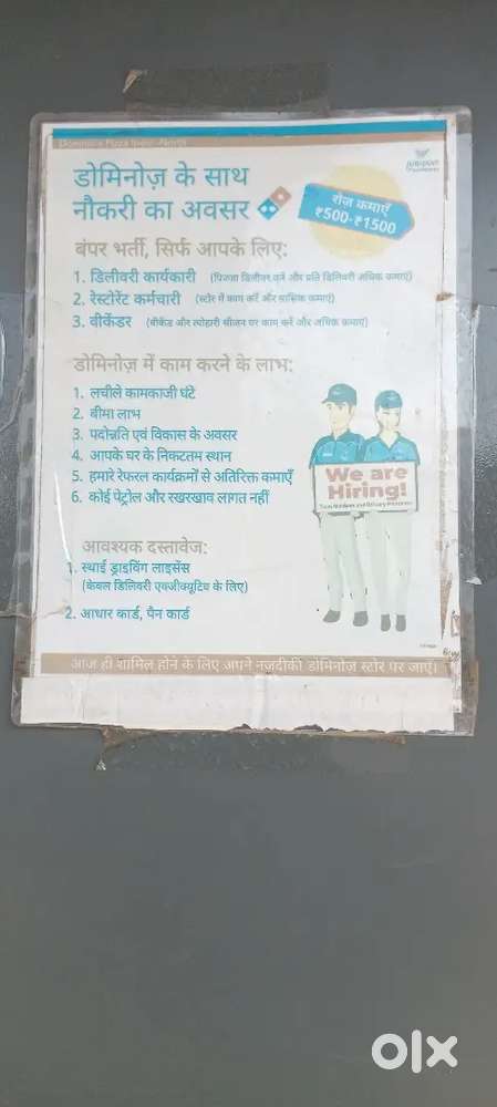 - ₹ 3000 - 5000 | WeeklyDomino's Pizza delivery riderVallipur, Sultanpur24 Nov