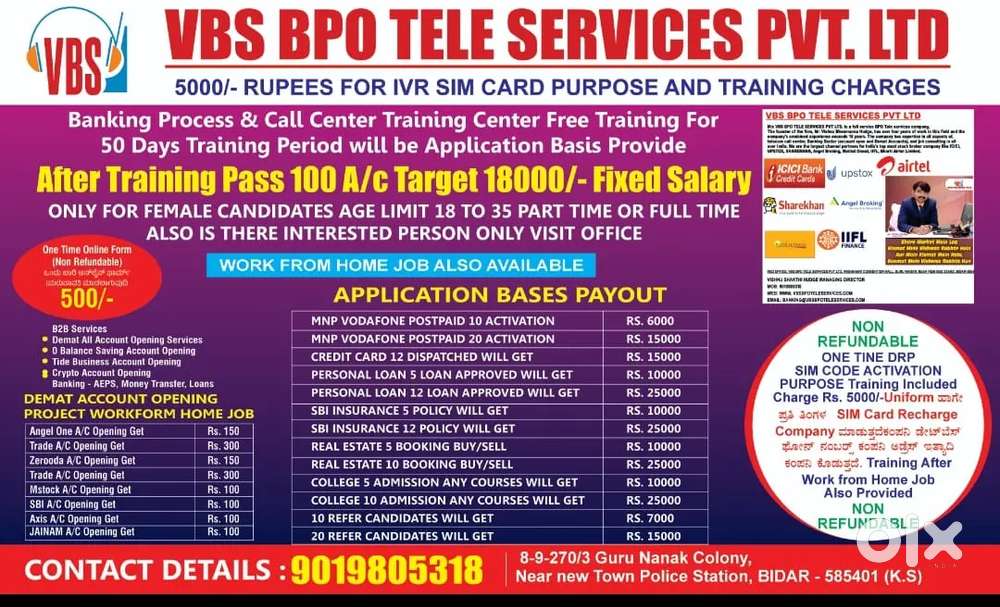 - ₹ 8000 - 10000 | WeeklyTelecallerGurunanak Colony, BidarToday