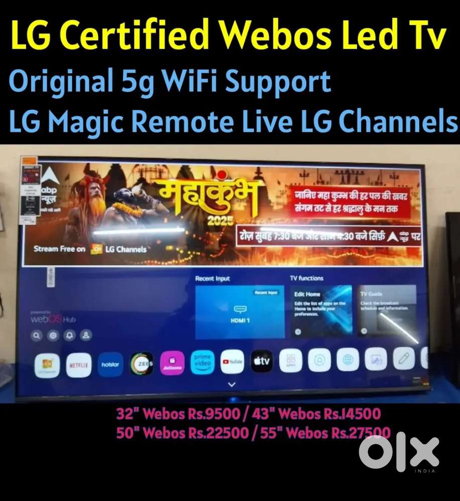 - ₹ 14,5002 days agoLG Certified43 inch webOs ThinQ Ai Led Tv - Original webOs authorisedHousing Board Colony, Shahbad