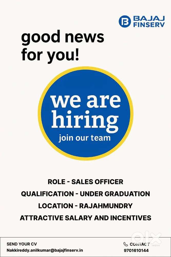 - ₹ 15000 - 17500 | MonthlyBAJAJ FINSERV SALES EXECUTIVESInnespeta, RajahmundryToday