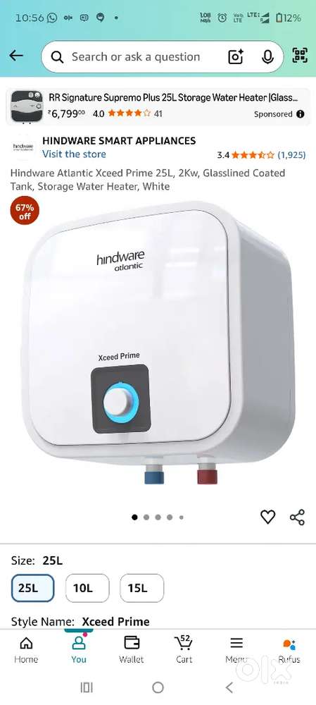 - ₹ 6,000Gyser 25 litre hindwareKaikamba, MangaluruToday