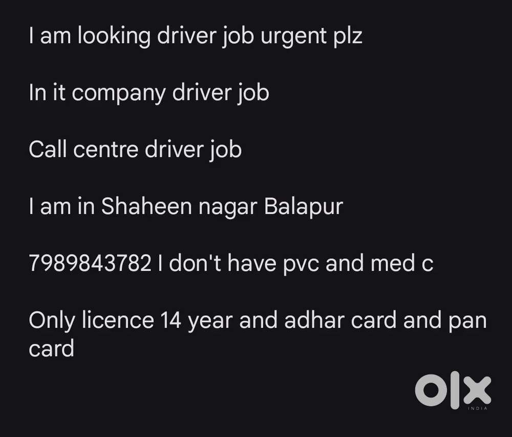 - ₹ 10000 - 17000 | WeeklyDriver want if you are interested call meFalaknuma, HyderabadToday