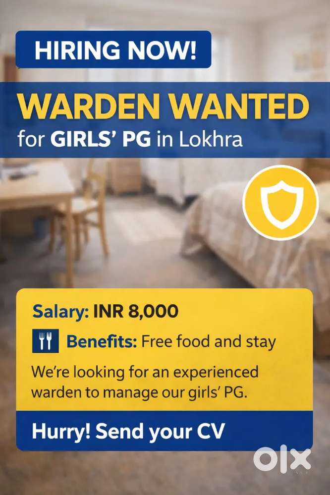 - WARDEN for GIRL'S PG LOKHRALokhra, GuwahatiToday