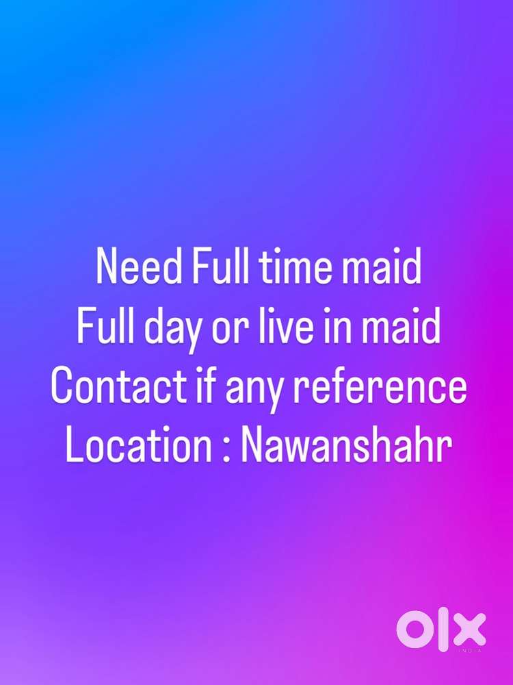 - ₹ 7000 - 8000 | MonthlyFull time maidSirsa Colony, NawanshahrToday