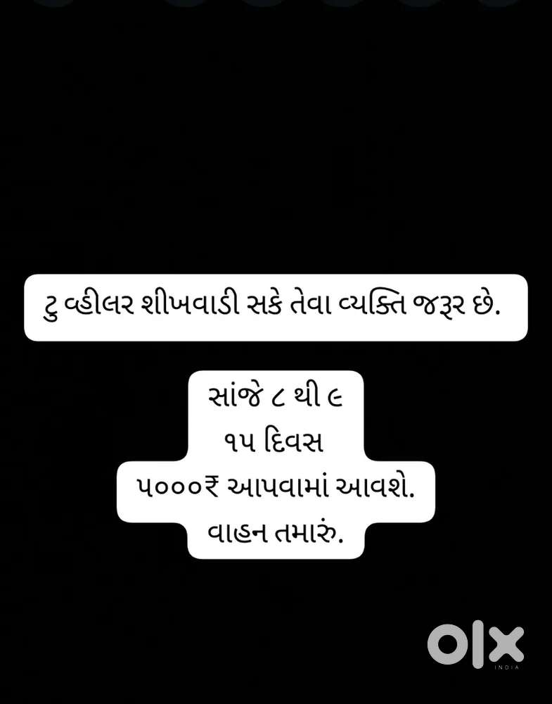 - ₹ 2000 - 5000 | HourlyTwo wheeler driving 15daysMaruti Chowk, RajkotToday