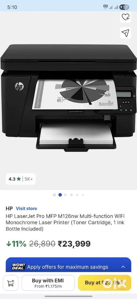 - ₹ 9,200hp laser jet pro mfp m126nw printerMilanpur, MajgaonToday