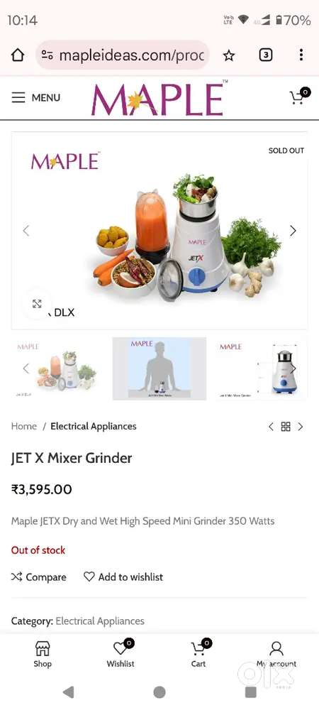 - ₹ 3,095Branded maple mixer grinder for sale.(NEW)Ameerpet, HyderabadToday