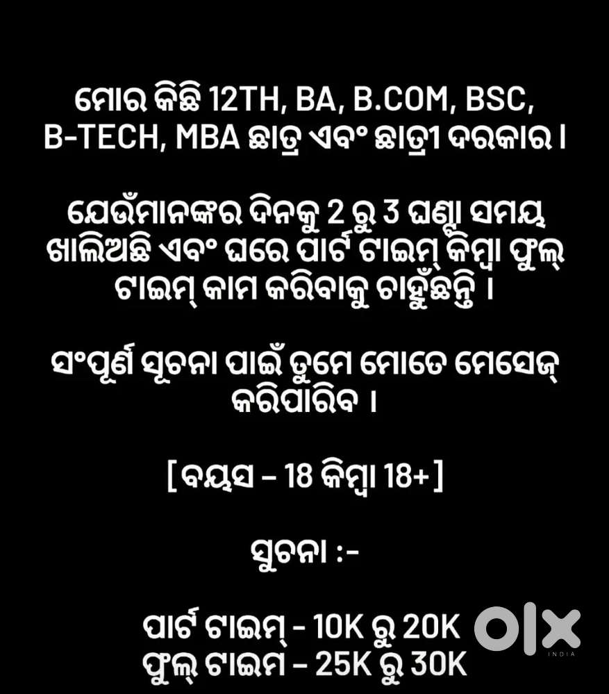 - ₹ 7000 - 15000 | MonthlyPart Time Work Full Time Work student, housewife and job personMayaparha, Sambalpur17 Dec