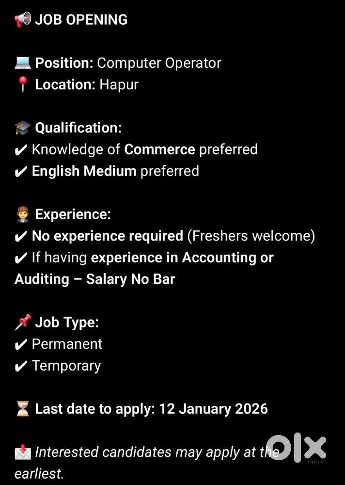 - ₹ 10000 - 15000 | MonthlyComputer operatorPari Chowk, Greater Noida2 Dec
