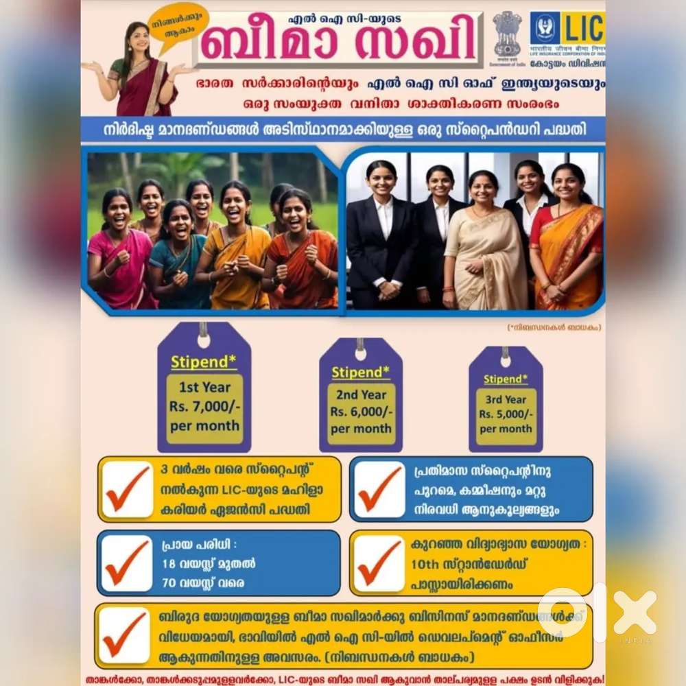 - ₹ 10000 - 100000 | MonthlyBIMA SAKHI (LIC ADVISOR)Tana, IrinjalakudaYesterday