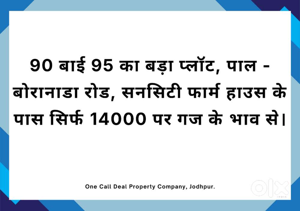 - ₹ 1,33,00,000Today90x95 Sized Big Plot Available For Sale On Pal - Boranada RoadPal Garh, Jodhpur