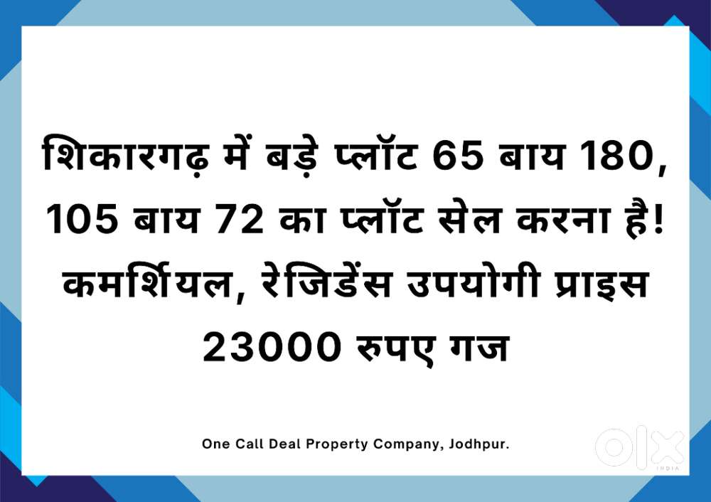 - ₹ 2,99,00,000TodayBig Size Commercial Plots Available For Sale In ShikargarhShikargarh, Jodhpur