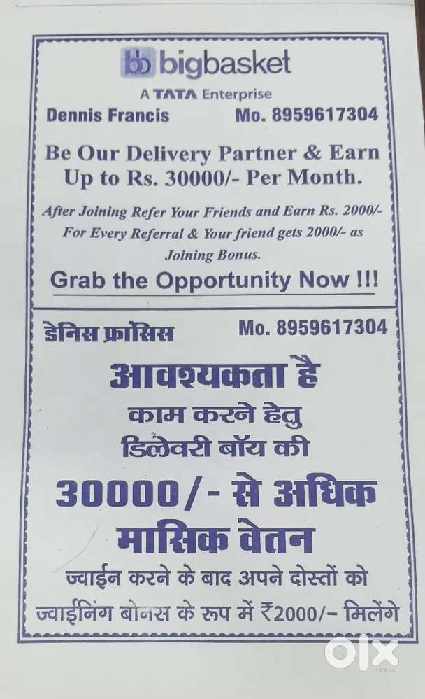 - ₹ 15000 - 30000 | WeeklyBig Basket Delivery PartnerGayatri Vihar, GwaliorToday