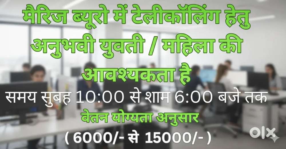- ₹ 6000 - 15000 | Monthlyऑफ़िस कार्य हेतु टेलीकॉलिंग महिलाओ एवं युवतियो की अतिशीघ्र आवश्यकता हैVyapar Vihar, BilaspurToday