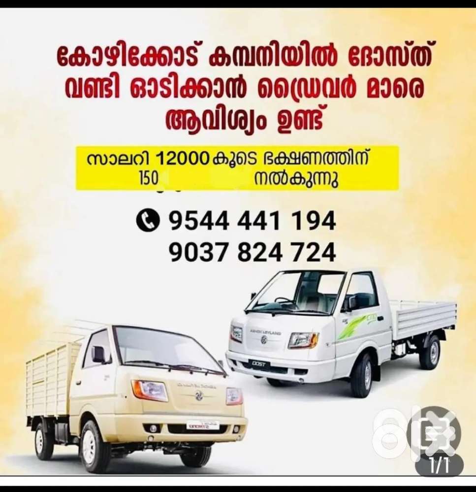 - ₹ 22000 - 28000 | MonthlyDriver , KozhikodeAreekkad, KozhikodeToday