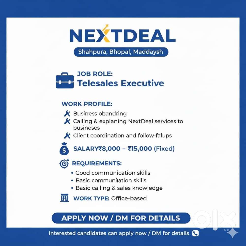 - ₹ 10000 - 15000 | MonthlyTELESALES ONLY FOR FEMALEShahpura, BhopalToday