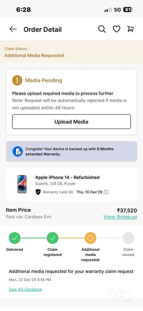 - ₹ 36,000iPhone 14 – 256GB Excellent Condition (With Box)Panvel, Navi Mumbai3 days ago