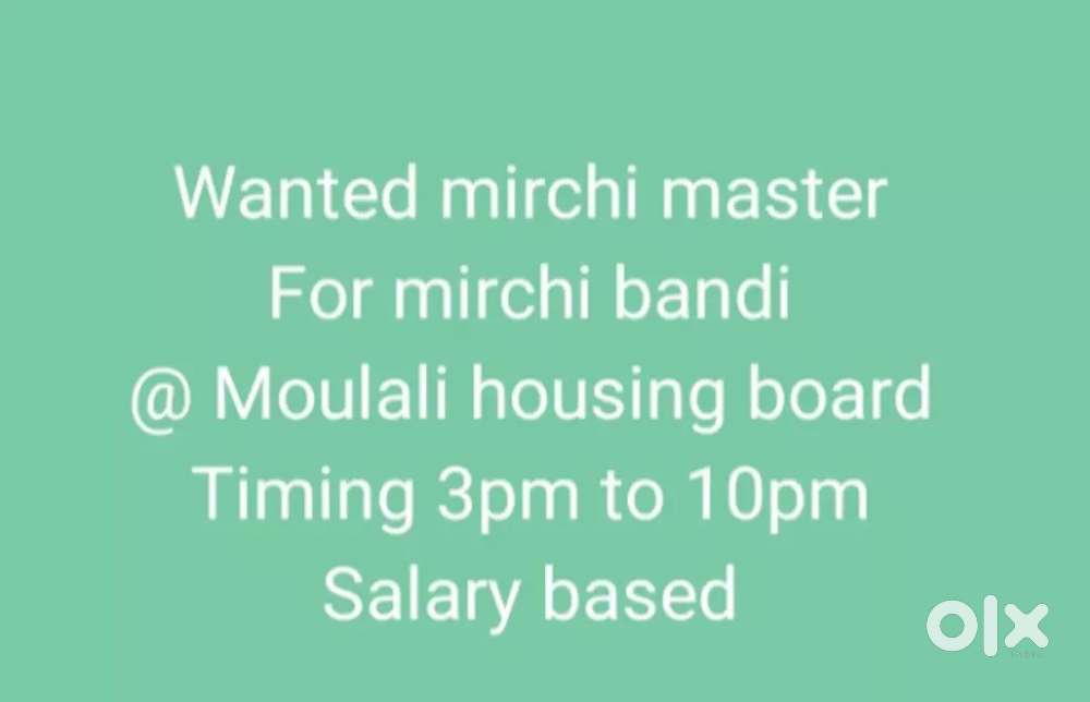 - ₹ 14000 - 16000 | MonthlyMirchi master for mirchi bandi @ Moulali housing board colonyMoula Ali, HyderabadToday