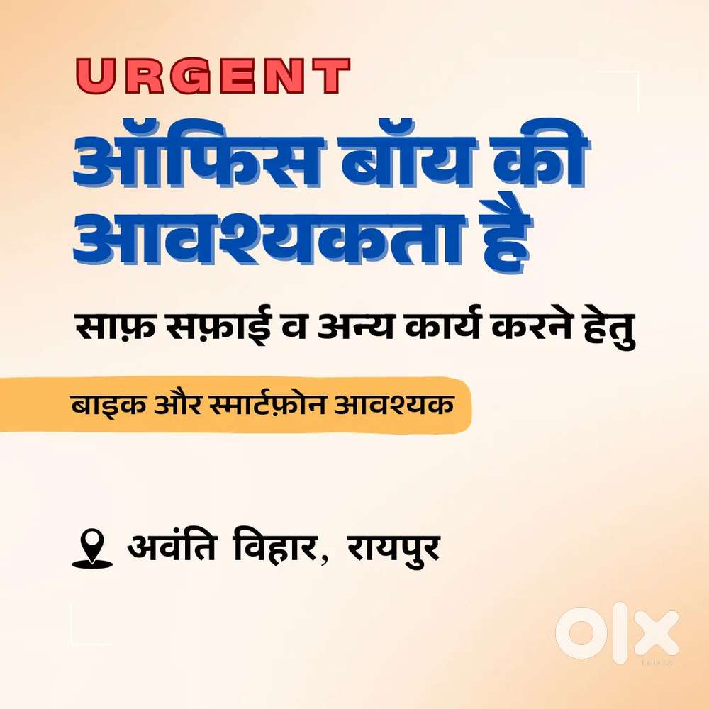- ₹ 8000 - 10000 | MonthlyUrgent Raipur Office ke liye Office Boy ChahiyeAvanti Vihar Colony, RaipurToday