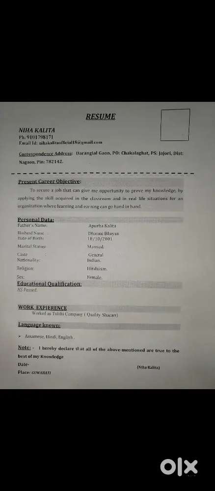 - ₹ 10000 - 15000 | MonthlyGuwahatit poisa Nidia koi kam pam nekiZoo Tiniali, GuwahatiToday