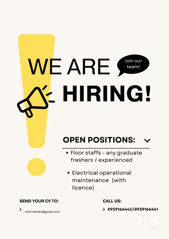 - ₹ 17000 - 22000 | MonthlyWanted Staffs in ChennaiKelambakkam, ChennaiToday
