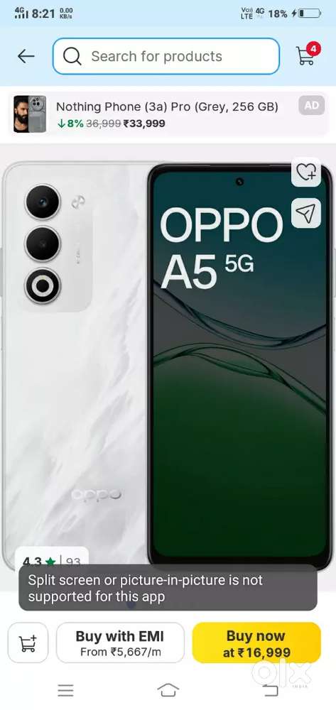 - ₹ 14,850Oppo A5 8+128Gb white under warranty 4 month old onlyChaukunti Mohalla, Bikaner3 days ago