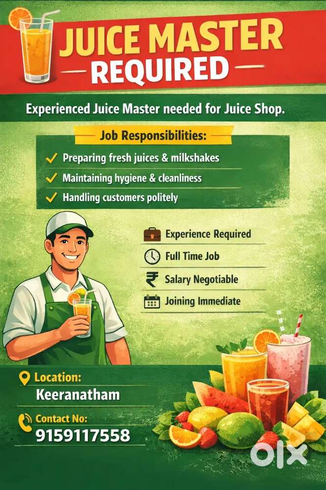 - ₹ 17000 - 20000 | MonthlyJuice master- keeranathamSaravanampatti, CoimbatoreToday
