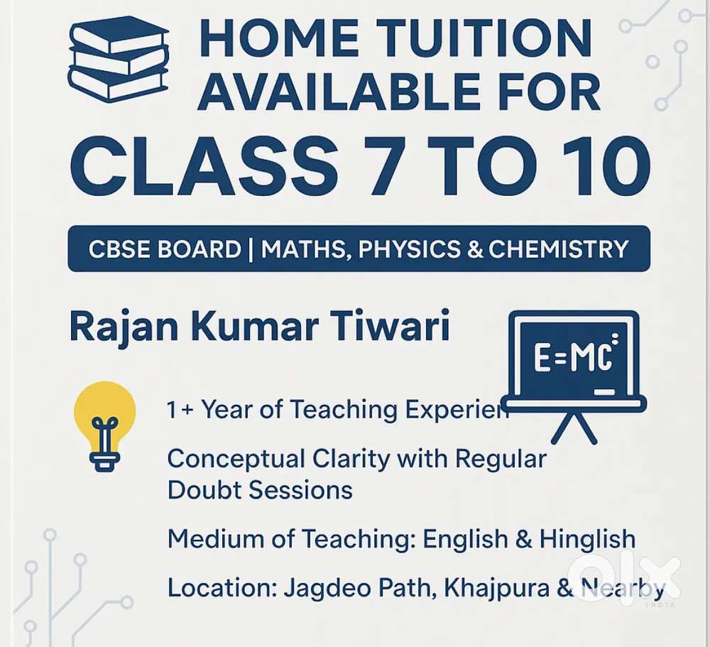- Home Tutor for Class 7-10 (CBSE) – PCM Made Easy!Gokul Nagar, PatnaYesterday