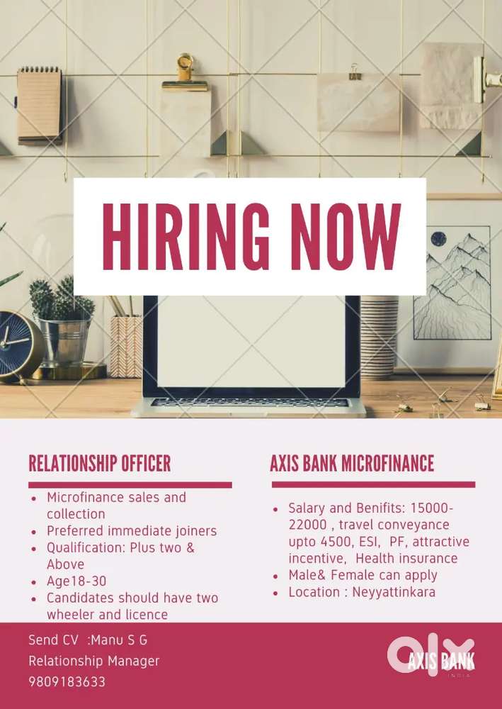 - ₹ 15000 - 22000 | MonthlyAxis Bank MicrofinanceMoonnukallinmoodu, NeyyattinkaraToday
