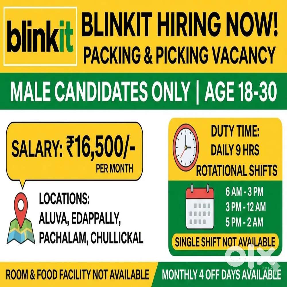 - ₹ 15000 - 18000 | MonthlyPachalam Blinkit store- urgent vacancyPachalam, Kochi3 days ago