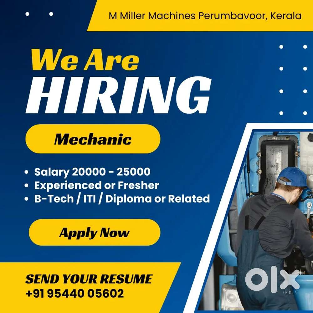 - ₹ 20000 - 25000 | MonthlyWe are hiring mechanic / TechnicianKuruppampady, Perumbavoor18 Nov