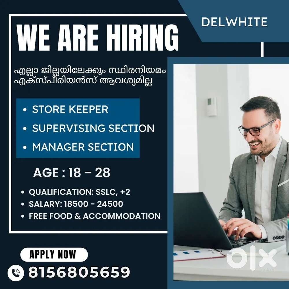 - ₹ 21000 - 25000 | MonthlyCONFIDENCE OUTLET VACANCYCherthala Municipal Town, Cherthala2 days ago