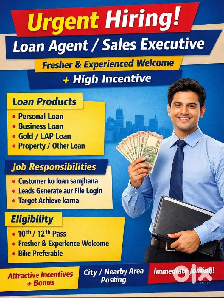 - ₹ 1000 - 100000 | MonthlyNBFC Loan Company Hiring Field Loan Agent Loan Sales JobCivil Lines, AllahabadToday