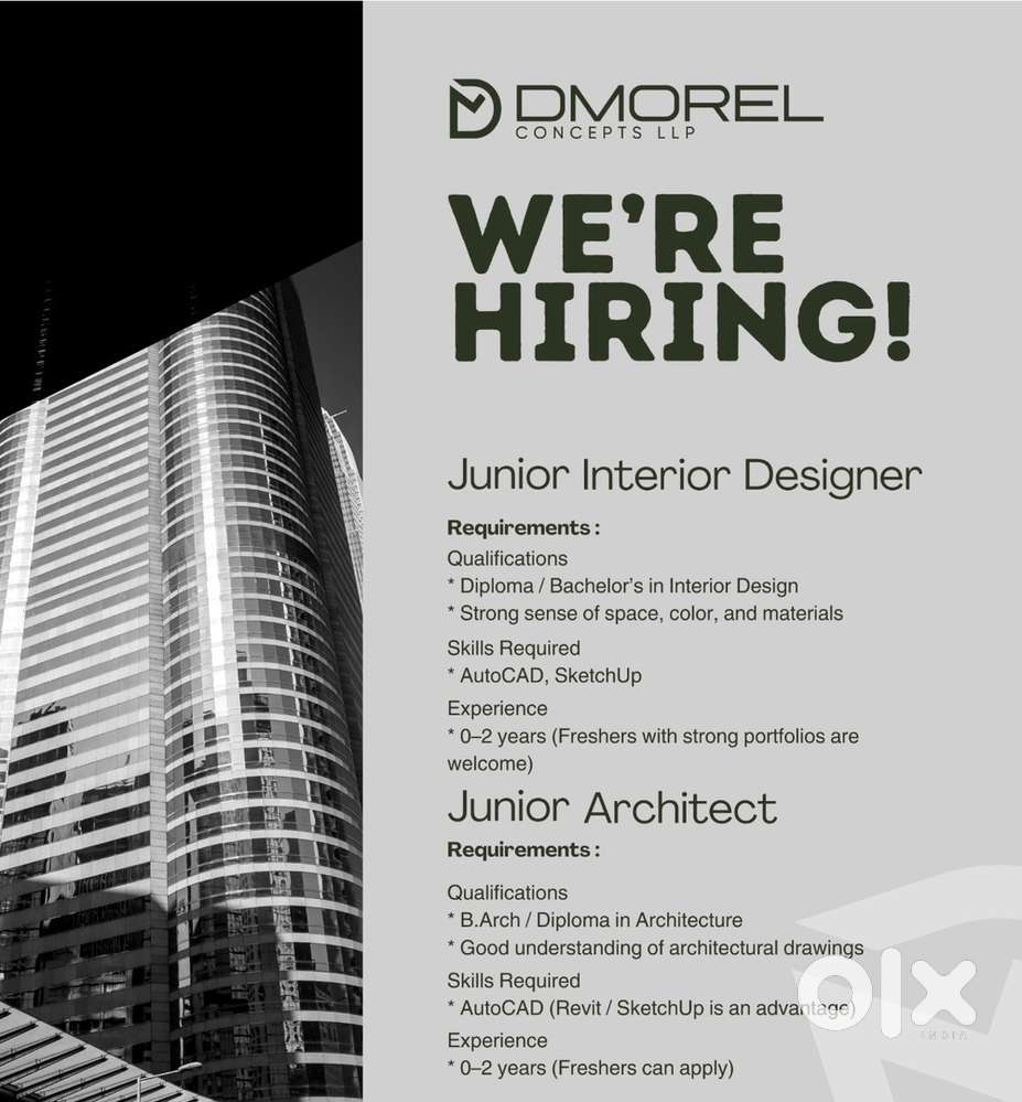 - ₹ 10000 - 20000 | MonthlyJunior Interior DesignerChandranagar, Palakkad25 Dec
