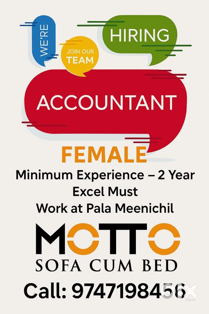 - ₹ 12000 - 15000 | MonthlyAccountant -femaleMeenachil, PalaiToday