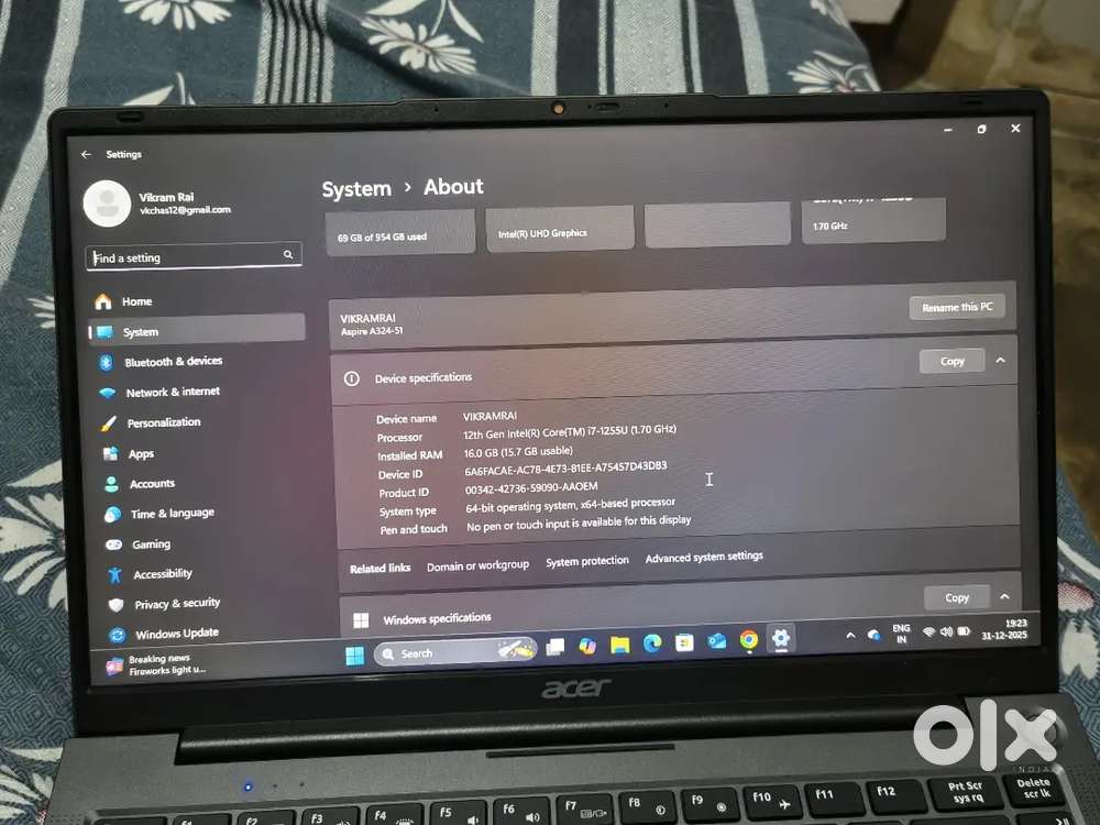 - ₹ 40,000Acer Aspire 3 i7 12th gen + 1tb Ssd + 16gb ram under warrantyPrems Colony, Bokaro Steel CityToday