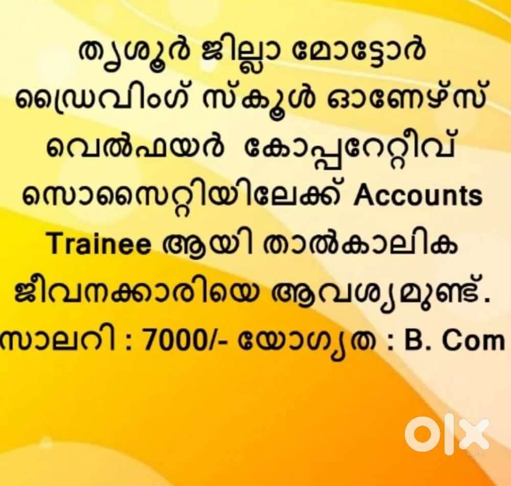- ₹ 7000 - 7001 | MonthlyAccounts TraineeAyyanthole, ThrissurToday