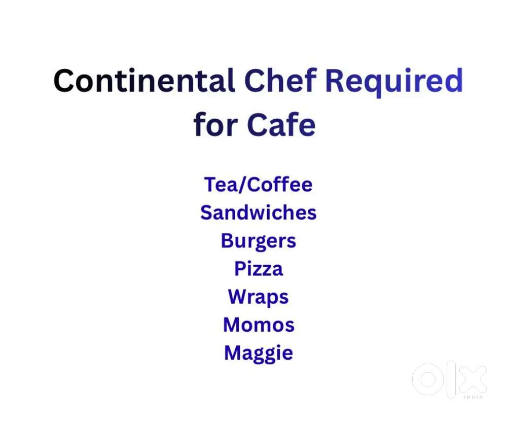 - ₹ 12000 - 15000 | MonthlyContinental Chef Required for CafePimple Nilakh, PuneYesterday