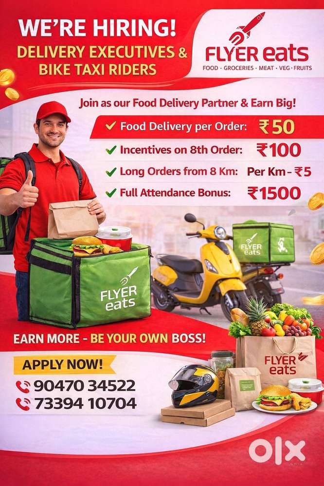 - ₹ 35000 - 65000 | WeeklyFOOD DELIVERY JOB WEEKLY PAYMENT IMMEDIATELY JOININGKoundampalayam, CoimbatoreToday
