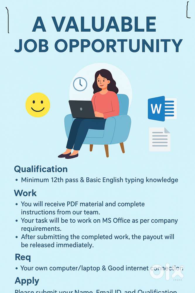 - ₹ 20000 - 30000 | MonthlyWFH - ONLINE OPPORTUNITY We are offering a Work From Home opportunityGandhi Nagar, CoimbatoreToday