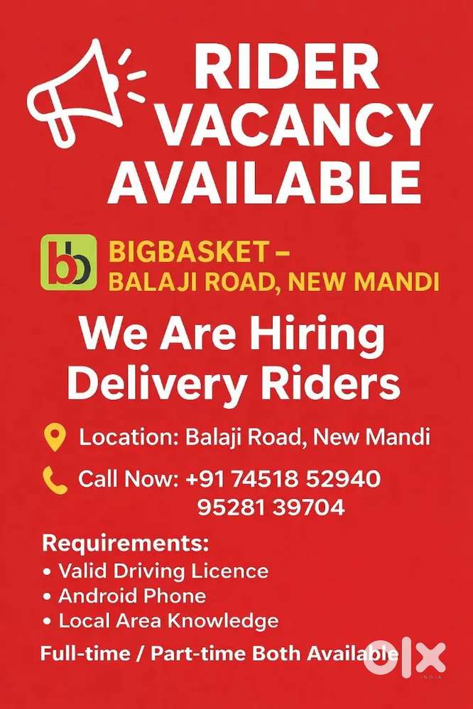 - ₹ 20000 - 30000 | WeeklyWe are hiring Riders local area knowledge fix order pay limited areaBhartiya Colony, MuzaffarnagarToday