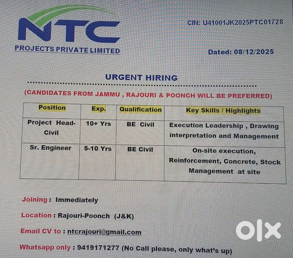 - ₹ 12000 - 35000 | MonthlyBanking sector & airport sectorGandhi Nagar B Ext, Jammu2 days ago