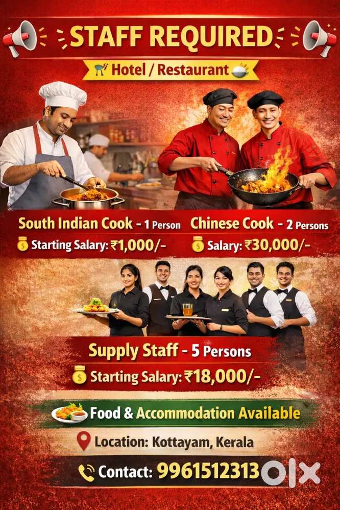 - Waiter , Housekeeping SupervisorThavalakuzhy, EttumanoorYesterday