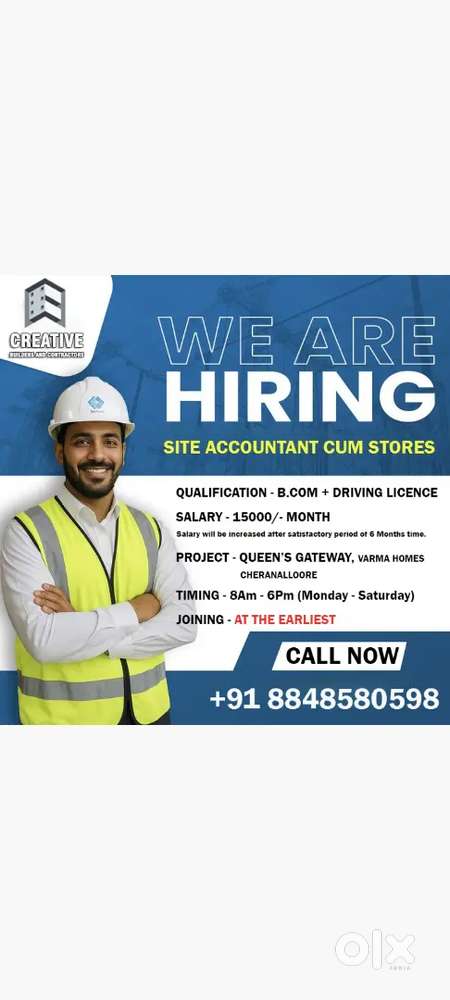 - ₹ 15000 - 20000 | MonthlyConstruction site office account add store keeperEdapally, KochiToday