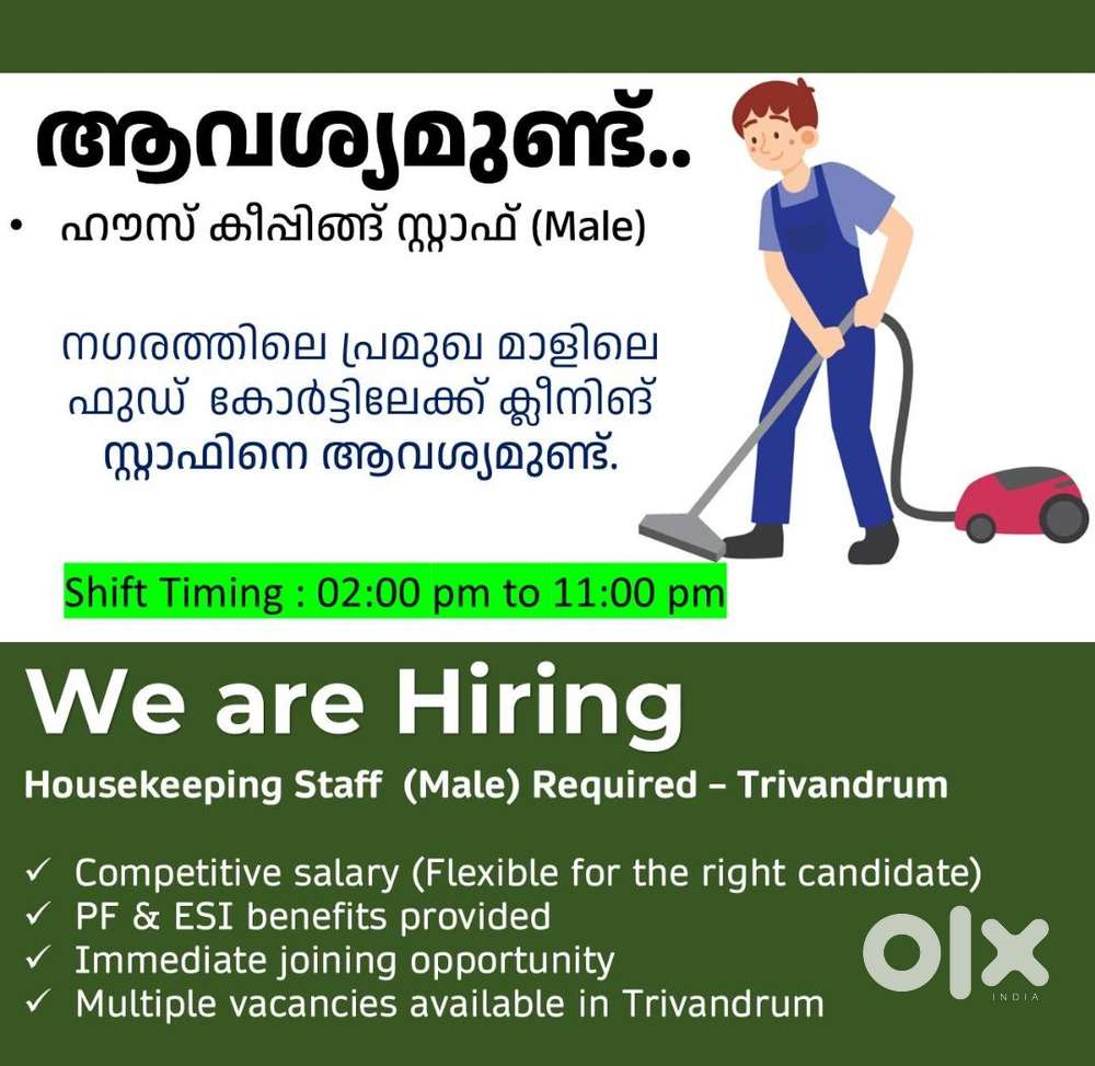 - ₹ 13000 - 17000 | MonthlyHouse Keeping / Housekeeping Staffs / Cleaning StaffPettah, ThiruvananthapuramYesterday