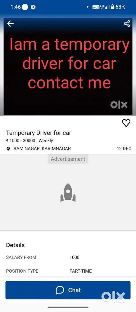 - ₹ 1000 - 1200 | Weeklylam a temporary driver for car contact meKrishna Colony, WarangalToday
