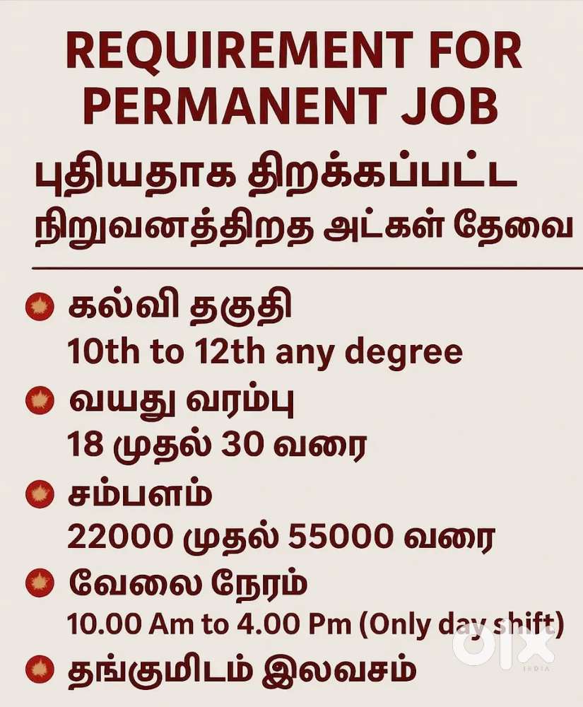- ₹ 20000 - 30000 | MonthlyNew branch opening in chennaiMinjur, Chennai2 days ago